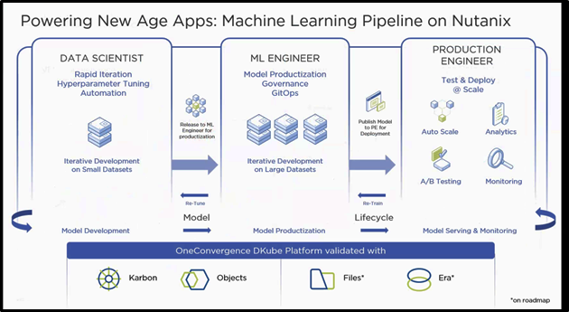With Nutanix Karbon customers get that supported Kubernetes. Along with Nutanix Objects and Files as the foundation underneath Dkube brings AI/ML model development and deployment wherever Nutanix customers are, wherever their data is - onprem or in the cloud. Between the support infrastructure of Nutanix and One Convergence customers will get a fully supported AI/ML engine. Just like Nutanix's core platform it runs on Nutanix's own appliances as well as third party servers available from Dell, HPE, Cisco, Supermicro, Lenovo and others.